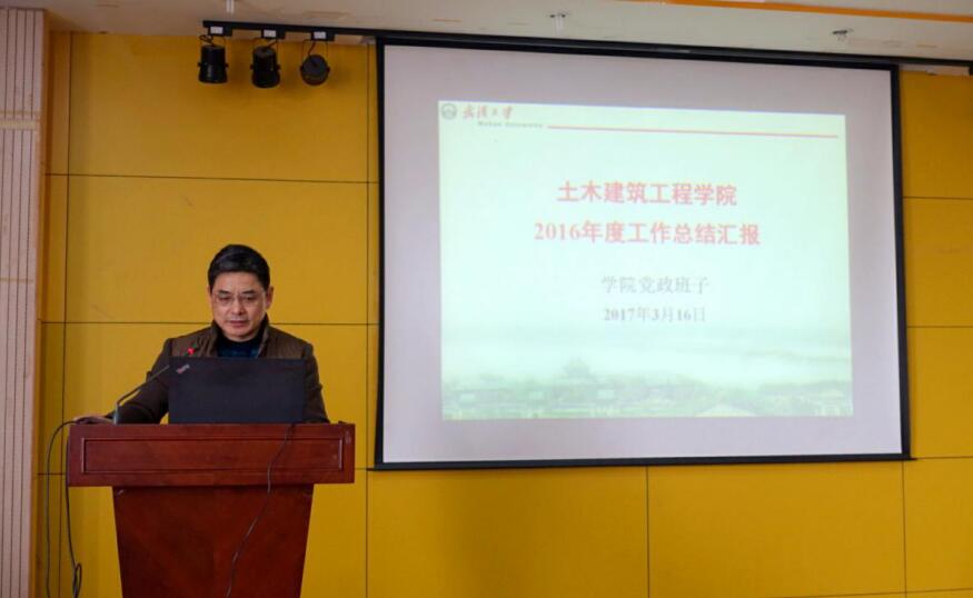 会上,院长刘泉声代表学院向全院教职工汇报学院2016年度工作。刘院长从学科和师资队伍建设、人才培养、科学研究与合作交流、行政管理和实验室管理、党建和思想政治工作、存在问题与挑战等六个方面对学院2016年工作进行了认真总结,同时也分析了学院发展面临的形势与问题,刘院长表示,学院2017年工作提出将加大改革创新力度,采取综合有效举措,着力解决突出问题,努力提高学院核心竞争力,确保完成预期发展目标。