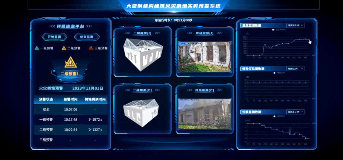 大型钢结构建筑火灾倒塌实时预警系统界面