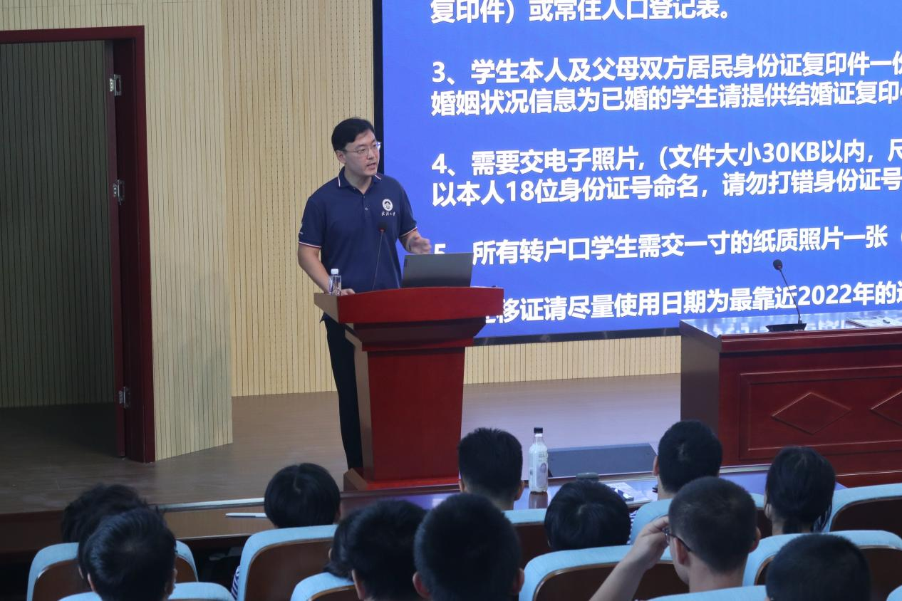最后,2021级兼2022级专职辅导员杨柳为新生即将开始的新学期给出了自己的建议,并就户口迁移、选课和学风建设等相关事宜为大家进行细致讲解,为新同学们开启大学学习生活提供指引。