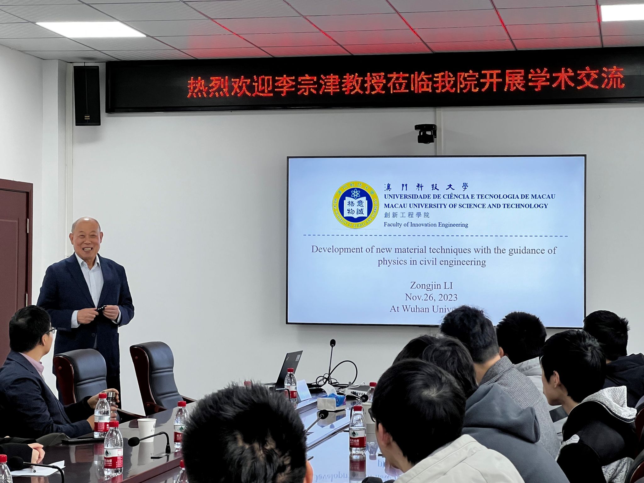 20231126日上午,应新黄金城667733于清亮教授邀请,澳门科技大学李宗津教授开展了主题为“Development of new material techniques with the guidance of physics in civil engineering”的学术报告,学院多个团队的研究生及本科生参加了讲座并与受邀教授展开学术交流。