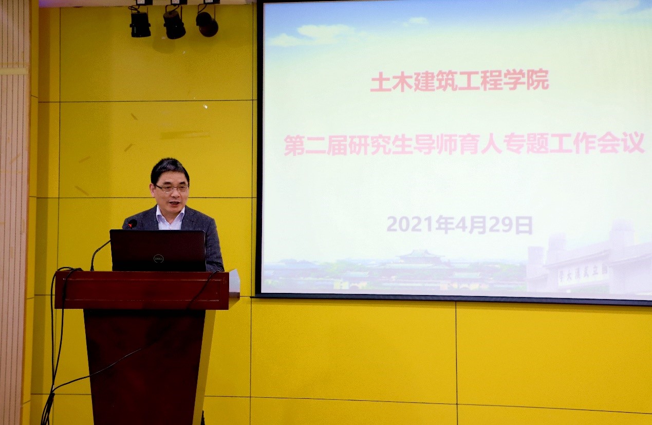 会议伊始,校党委副书记屈文谦致开幕词,他代表学校党委向会议的顺利举办表示祝贺,并对土建学院在研究生培养方面做出的成绩给予了充分肯定。他表示,研究生教育作为国民教育体系的顶端和国家创新体系的重要组成部分,肩负着高层次人才培养和创新创造的重要使命,是国家发展、社会进步的重要基石,是应对全球人才竞争的基础布局。他希望研究生导师能做到以德育德、以心育心,育人为本、德育为先,因材施教、因势而新,与研究生建立亲密、和谐的师生关系,落实好导师作为第一责任人的关键作用。