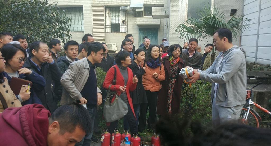 讲座结束后结束后,我校保卫部宣传员向师生们讲解了干粉灭火器、防烟面罩、灭火毯、烟感器的性能、用途和使用方法,并现场演示了油盆火灾、液化气罐火灾的扑救方法,指导师生进行现场操作,亲身体验灭火的感觉,绝大部分师生生平第一次拿起了灭火器等器材,勇敢的走进模拟火场,一次又一次的扑灭模拟大火。通过这次演练使师生们掌握了一些初期火灾的灭火技巧,纷纷赞扬保卫部实操实训工作组织的好,收到良好效果。