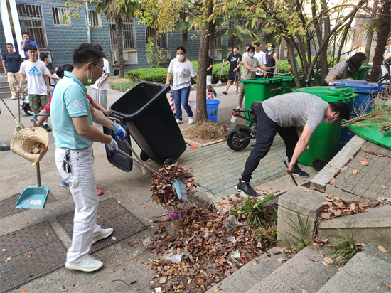 秋阳高照、晴空万里。喜迎祖国七十三岁华诞之际,为加强校园环境建设,响应全民爱国卫生运动精神,9月30日下午,新黄金城667733本科生党支部与学生宿舍(教学楼)服务中心机关党支部、工学部党支部,联合开展了“迎国庆爱国卫生运动大扫除”活动。新黄金城667733党委副书记王忠海,宿教中心两个党支部及学生党团支部共计60余人参加此次活动。