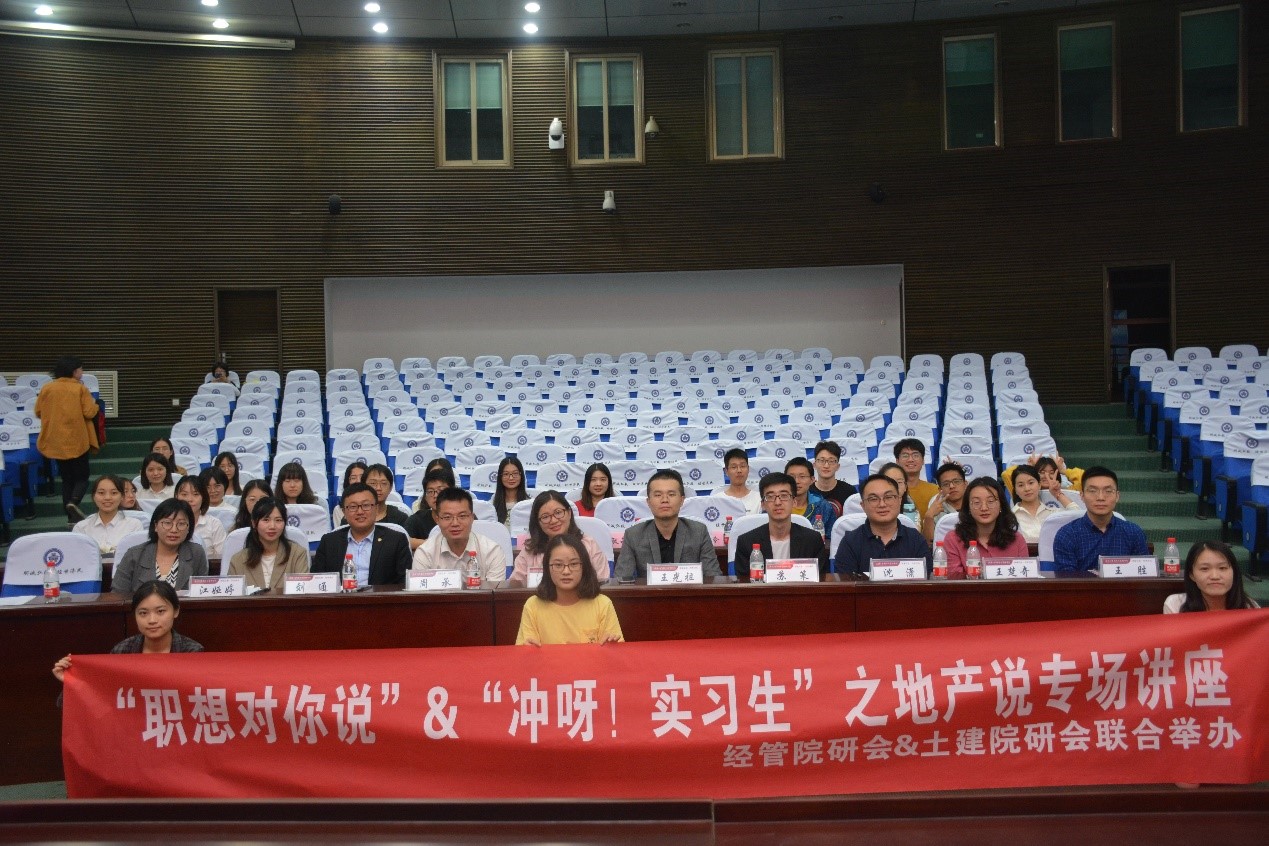 5月10日晚7:30,由经管研会和土建研会合办的地产分享会——“职想对你说”“冲啊,实习生”在经管院景林报告厅顺利举办。本次分享会邀请了诸多全国知名房地产企业前辈分享工作经验、介绍面试及暑期实习相关事宜。本活动由嘉宾轮流分享和HR暑期实习答疑两部分组成,其中嘉宾分享环节穿插两轮互动答疑。