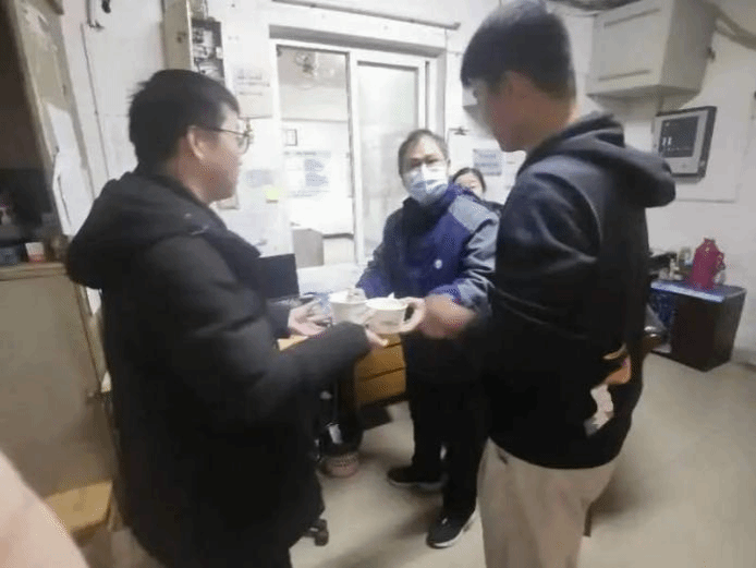 同学们深知,宿舍环境与日常生活开展,离不开负责宿舍管理和后勤工作的叔叔阿姨们的辛勤努力。为了表达对他们的感激之情,志愿者们第一时间将煮好的水饺送到了他们的手中。水饺作为冬至这个传统节日的食物,象征着团圆和温暖。通过这份小小的心意,志愿者们希望能够传递给宿管阿姨叔叔们对他们的关怀和感谢。