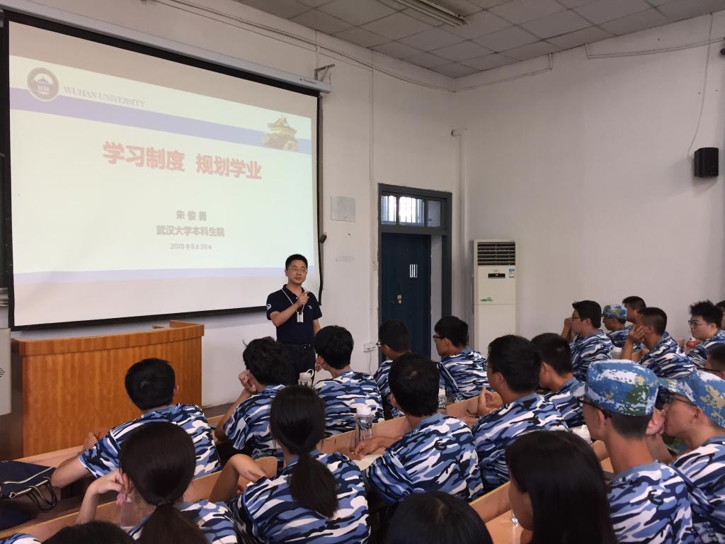 朱老师强调,学习校纪校规就是为了熟悉教学相关管理制度,规范学习行为,遵循教学管理,自觉维护正常教学秩序;学习校纪校规,就是帮助同学们了解自身权利和义务;学习校纪校规,就是帮助同学们做到提前预防,知道什么不能做,避免因出现无法挽回的问题而后悔。朱老师鼓励新同学们全面深入地了解武大,认真学习校纪校规,为自己的大学树立一个目标,用积极向上的态度,面对未来的每一个挑战,“明确方向,倍加努力,贵在坚持”,成长为国家脊梁与领袖人才。