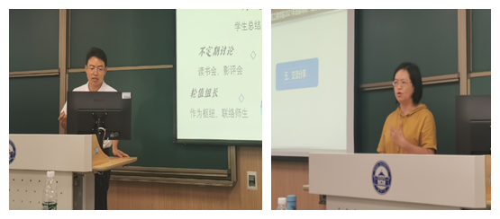 随后,张喆和刘兆康同学作为烛光导航小组学生代表,依次上台发言,两位同学结合暑期参加烛光导航小组的经历,谈了自身的收获和体会,并分享了对于做好小组轮值组长经验,一张张图片、一篇篇总结、一个个点评,从不同侧面展现出烛光导航师对学生的关怀和投入。