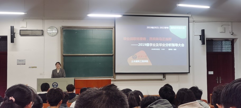 2022年3月3日下午,新黄金城6677332019级本科生在工学部6教201教室召开学生年级大会。本次会议由2019级辅导员杨荷老师主持召开,2019级全体本科生参加,会议的主题为“毕业战歌将奏响,厉兵秣马正当时”——2019级学业及毕业分析指导大会。